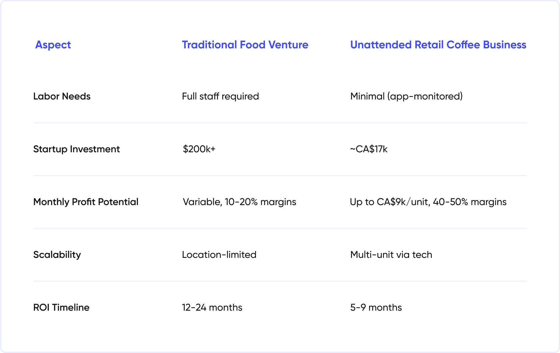 Traditional food models often grapple with staffing challenges and high overhead, but unattended retail coffee flips the script by leveraging automation to create semi-passive income streams. This business isn't about managing shifts or inventory manually; it's about deploying smart systems in high-traffic locations to generate consistent revenue. In this post, we'll explore the key drivers, benefits, and future outlook for this emerging space, backed by industry data and partner insights, to help serious investors evaluate its potential.